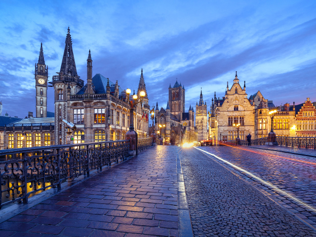 Обои: Мост и старинные дома в городе Гент, Бельгия
