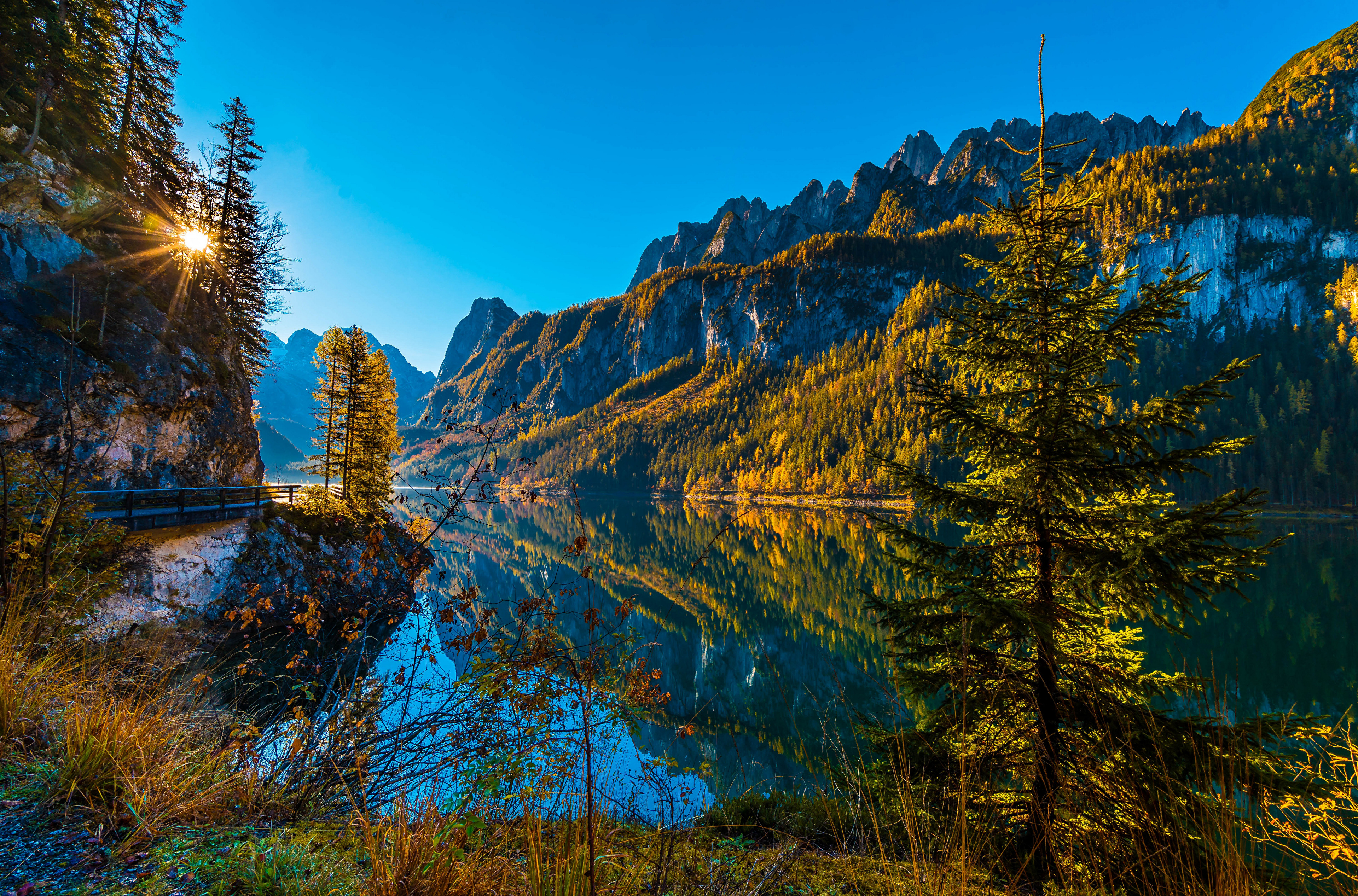 Солнце над горным озером, Австрия - 3840x2534