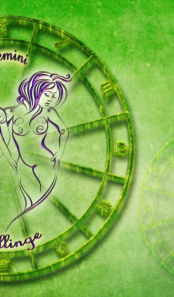 Знак зодиака близнецы на зеленом фоне Обои для рабочего стола 600x1024