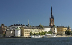 Городской пейзаж с пристанью