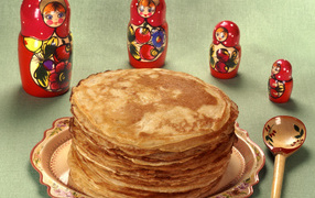 Матрешки и блины на Масленицу